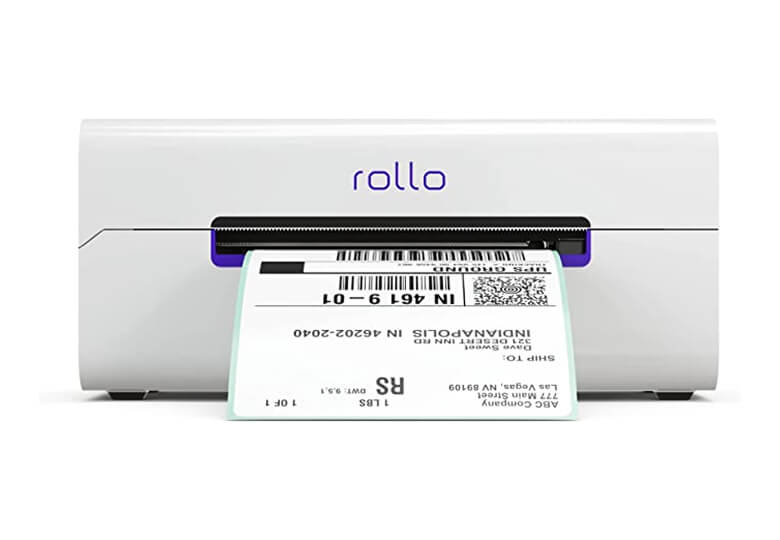 The Rollo X1040 prints address labels, shipping labels, and return labels from a single printer, automatically resizing labels.