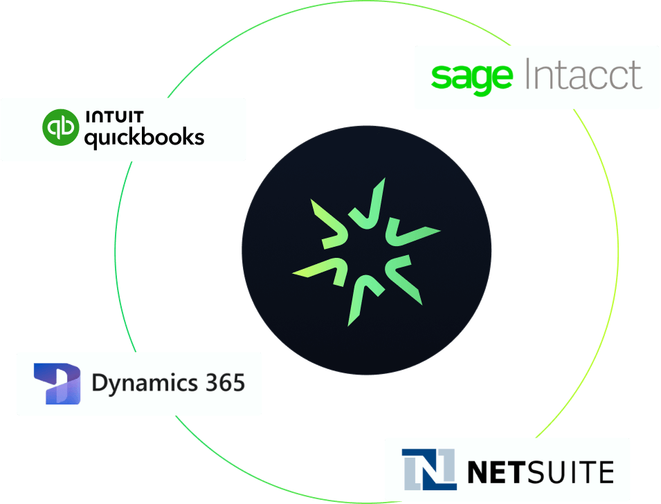 - QuickBooks, Sage, NetSuite, Dynamics, and more.