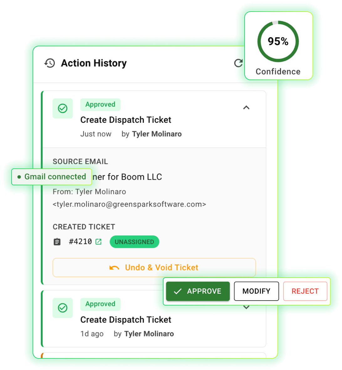 Agents can draft dispatch requests straight from email, monitor export cutoffs, prepare documents, and flag risks while you keep material moving.